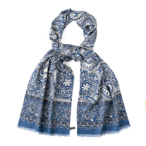 An elegant and stylish paisley print wool silk scarf, available in four colourways and exclusive to Adamley Textiles.