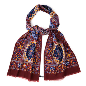 An elegant and stylish aztec print wool silk scarf, available in five colourways and exclusive to Adamley Textiles.
