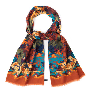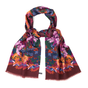 A perfectly soft and pristine wool-silk blend, this unique botanical scene scarf is a timeless classic. A wardrobe essential, this design is available in five colourways.